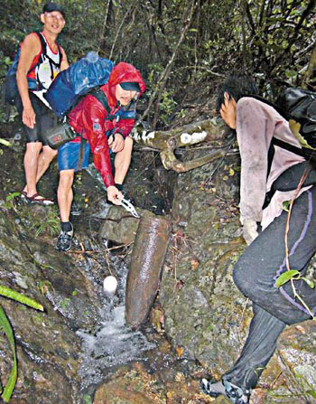 及后,發(fā)現(xiàn)炮彈的其中一名王姓爬山人士,思前想后,恐怕炮彈一旦發(fā)生爆炸,會傷害其它游人,于10上午9時12分報警,并將現(xiàn)場位置繪成地圖,交給警方,但他因為要帶隊爬山,沒有隨行搜索炮彈。