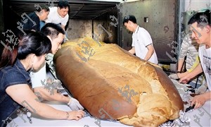 澳門豬扒包遠近馳名,這次壯舉,由澳門女企業(yè)家與金馬輪咖啡餅店合作,并由金馬輪店焗制。巨型豬扒包長293公分、寬155公分、高33公分,共重540磅,動用面粉200斤、豬扒80磅。從搓面粉、發(fā)酵等工序到最終“面世”,共耗時逾13小時,需7個員工合力制作。