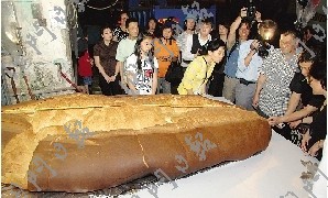 中新網(wǎng)5月22日電 《澳門日報》今日在頭條刊發(fā)報道稱,由澳門金馬輪咖啡餅店焗制的巨型豬扒包于21日舉行的“愛在澳門——第二屆世紀婚禮兩岸四地2009”活動開幕儀式中亮相,將申請成為吉尼斯世界紀錄大全中的全球最大的豬扒包。21日不少與會者均對巨型豬扒包十分感興趣,紛紛與包合照,場面熱鬧。