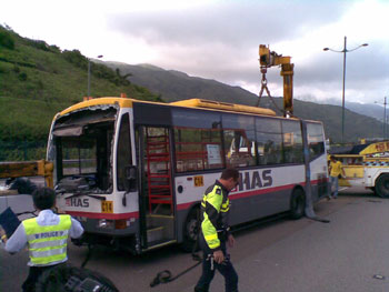 事發(fā)在凌晨4時許,車輛當時載有20多名下班員工,出九龍時在小蠔灣附近失控撞欄,全車翻側(cè),3人壓在車底。消防員由車頭進入車廂救人,傷者分別送往瑪嘉烈及仁濟醫(yī)院。