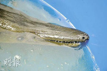 康文署6日再在轄下場地人工湖發(fā)現(xiàn)5條福鱷,即共發(fā)現(xiàn)22條。這5條新發(fā)現(xiàn)的福鱷,將被置于公園內(nèi)游人不能到達地方,稍后再作處理。