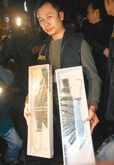 為防黑幫再作街頭火拼,油尖警區(qū)反黑組先發(fā)制人,27日凌晨1時許根據(jù)線報(bào),掩至漆咸道南一間私人會所搜查,搗破黑幫武器庫,檢獲兩柄染有血漬開山刀及三支長電筒,以涉嫌藏有攻擊性武器罪拘捕何姓、24歲會所負(fù)責(zé)人,并會檢驗(yàn)利刀有否涉及血案。