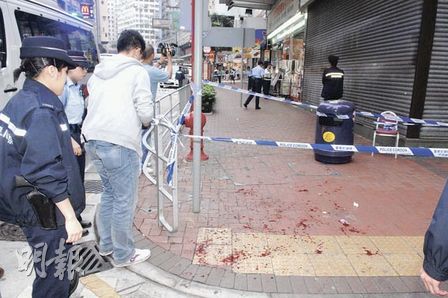 中新網(wǎng)4月20日電 綜合香港媒體報(bào)道,香港油麻地街頭19日清晨發(fā)生斬人血案。黑社會(huì)“14K”及“新義安”兩幫人馬在夜店消遣時(shí)疑因“爭女仔”發(fā)生爭執(zhí),“14K”一方離開時(shí),在街頭突遭3名刀手伏擊,揮刀狂劈,其中兩人走避不及中刀受傷,一人危殆。