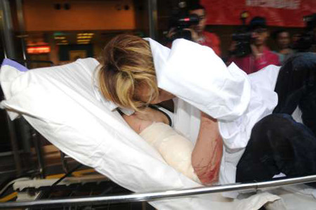 據(jù)悉,吳、鐘與3名同門兄弟,昨日凌晨在油麻地一間夜店因?yàn)椤盃幣小眴栴},與新義安人馬爭執(zhí),雙方在夜店并沒有動(dòng)武。至清晨6時(shí)許,14K一方5人消遣后離開,途至油麻地佐敦道近廟街街頭時(shí),突有3名手持牛肉刀的大漢追出,不由分說追斬各人,吳、鐘兩人走避不及,分別手部、腳部及背部中刀,渾身鮮血倒于街頭。3惡漢傷人后馬上跳上一輛接應(yīng)黑色奧迪逃去。