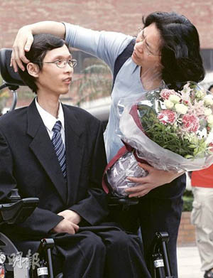 中新網(wǎng)5月9日電 有“港版霍金”之稱的劉曉鋒大學(xué)畢業(yè)后踏足社會(huì),準(zhǔn)備了他首項(xiàng)研究的成果作母親節(jié)禮物,報(bào)答媽媽的辛勞,他說﹕“沒有她照顧我,好多事都做不到!辈环謺円拐疹檿凿h26個(gè)寒暑的劉媽媽,卻從未視之為“辛苦事”。