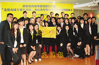 港臺青年交流促進(jìn)會主席黃英豪表示,國家主席胡錦濤最近發(fā)表的新形勢下的推動兩岸關(guān)系發(fā)展的6點(diǎn)重要主張中,特別提到“要加強(qiáng)兩岸青少年交流,不斷為兩岸關(guān)系和平發(fā)展增添蓬勃活動”。港臺會將在各方面的大力支持下,抓住有利時機(jī),舉辦更多的兩岸四地青少年的交流活動,充分發(fā)揮兩岸青年在推動兩岸和平發(fā)展中的重要作用。