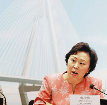 香港運輸及房屋局局長鄭汝樺14日在大橋融資安排記者會上表示,港方負(fù)責(zé)的工程包括港方口岸、連接路及人工島等,工程已進入法律程序及環(huán)境評估階段,有關(guān)單位會在折算有關(guān)費用的港幣總額和計及工務(wù)工程的儲備基金后,提交立法會交通事務(wù)委員會討論,冀暑假前可向財委會申請撥款,令港方口岸可最快于明年動工,爭取與大橋主體工程同步完成。