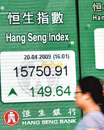 中新網(wǎng)4月21日電 據(jù)香港《文匯報》報道,港股20日顯著波動,好淡爭持,仍未能突破16000點大關(guān),成交也有所減少。恒指20日低開后曾跌至15382點低位,其后指數(shù)回升,從低位一下子反彈至15878點水平,波幅超過500點。全日恒指先跌后升報15750.91點,升149.6點,成交572億元。