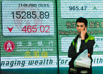 中新網(wǎng)4月22日電 據(jù)香港《文匯報》報道,美股大跌近300點,令港股21日裂口低開685點,是近期少見的大調整,匯控等一眾金融股成為跌市火車頭。下午港股跌幅收窄,全日收報15285點,跌465點,跌幅3%,為兩周來最大跌幅,成交縮至576.8億。