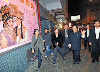 曾蔭權(quán)在過去兩個(gè)年度公布《施政報(bào)告》時(shí),都特別提及要“致力保存及發(fā)展粵劇這門本土傳統(tǒng)藝術(shù)”,并承諾會(huì)“改善香港文化服務(wù)和場(chǎng)地的營運(yùn)和管理”,積極保存和弘揚(yáng)這“非物質(zhì)文化遺產(chǎn)”。