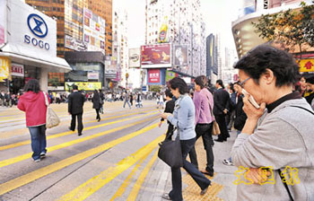煙霧籠罩香江,環(huán)保署三個路邊空氣質(zhì)素監(jiān)察站包括中環(huán)、銅鑼灣及旺角錄得逾100的甚高污染水平,截止10日傍晚6時,除中環(huán)空氣污染指數(shù)一度錄得119,銅鑼灣及旺角分別曾錄得114及106,均屬甚高水平,其它地區(qū)的一般監(jiān)測站,空氣污染水平維持在偏高水平。