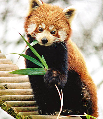 黃盛山說(shuō),因?yàn)樾⌒茇埿愿窈π,又?duì)聲音敏感,一聽(tīng)到聲就想躲藏,所以它們抵港后,就要特別訓(xùn)練它們不要太怕人,秘籍是多與它們傾談,讓小熊貓熟悉不同聲音,還有一個(gè)絕招就是用它們最愛(ài)吃的蘋(píng)果和以竹葉、面粉及雞蛋制造的“窩窩頭”逗它們。