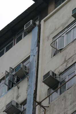 現(xiàn)場(chǎng)為大角嘴橡樹街九十號(hào)橡樹樓,樓高十一層,有三十四年樓齡,與隔鄰的廣和大樓緊貼。據(jù)街坊表示,兩幢大廈之間在大約二十年前,已出現(xiàn)一條明顯裂縫,但未有發(fā)現(xiàn)大廈結(jié)構(gòu)出現(xiàn)問(wèn)題。