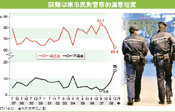 廖也說:“由于市民對公務(wù)員、公職人員要求高,加上以往警方滿意度都很高,稍有行差踏錯,影響便會較大,相信在近期事件影響下,市民要一段時間才能回復(fù)信心。”