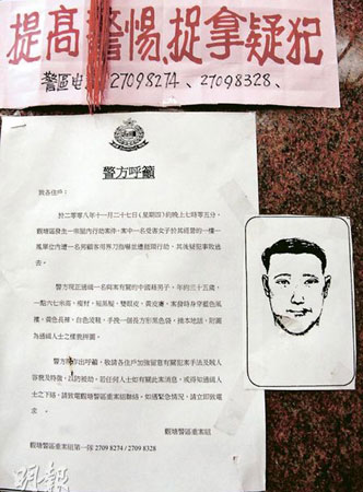 警方1日晨返回土瓜灣道鳳姐兇案現(xiàn)場,向街坊派發(fā)問卷,至1日晚,西九龍總區(qū)刑事總部總督察鐘志明再率領30多名重案組探員登上涉案鳳樓調查,又持一份區(qū)內(nèi)鳳姐名單,分成多組逐戶拍門派發(fā)問卷。有鳳姐指出,探員曾詢問有否見過一個年約30余歲、5呎10吋高、身穿黑衣黑褲及背斜袋的可疑男子出沒,又叮嚀她們要小心門戶。