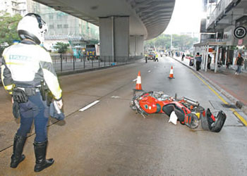 由于撞擊力甚猛,學(xué)童如斷線紙鳶般“彈”前數(shù)米才著地昏迷,頭手腳均受傷。肇事電單車則失控,沖前10多米后司機(jī)倒地受傷,但電單車余勢未了,在路面不斷打轉(zhuǎn),再沖前20多米才停下。幸好意外發(fā)生時該路段非繁忙時間,沒有車輛尾隨駛至,否則兩人可能會再被撞及或輾過。有路人目擊經(jīng)過大驚,實(shí)時報案求助。