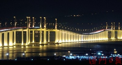 中新網(wǎng)3月16日電 據(jù)澳門日報(bào)報(bào)道,澳門三條跨海大橋照明系統(tǒng)去年底在臺(tái)風(fēng)中受損及被“水老鼠”偷竊,有關(guān)單位耗資1800多萬元進(jìn)行大規(guī)模維修。有關(guān)工程已全部完成,入夜后澳氹間海面再現(xiàn)“長虹”。