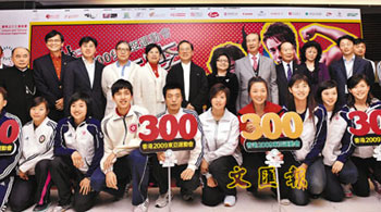 中新網(wǎng)2月9日電 據(jù)香港《明報(bào)》報(bào)道,香港東亞運(yùn)動會8日進(jìn)入倒數(shù)300日,特首曾蔭權(quán)和太太8日晚在港協(xié)暨奧委會會長霍震霆陪同下,特地到紅磡體育館觀看為東亞運(yùn)動員籌款的“左麟右李”演唱會,并與多名香港運(yùn)動員,包括羽毛球好手葉姵延握手。