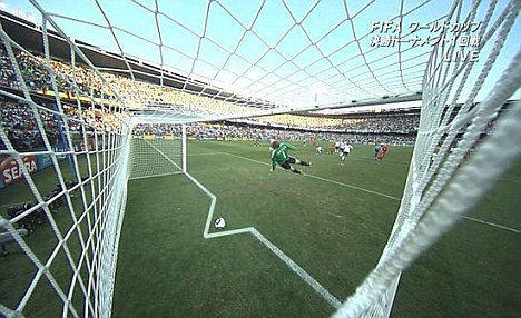 在一幅被英國(guó)網(wǎng)友修改的畫(huà)面中,球門(mén)線(xiàn)隨著球的路線(xiàn)而“打折”,以此表達(dá)他們對(duì)誤判的憤怒與不解。有些球迷甚至還要求軍情處調(diào)查裁判的出身。