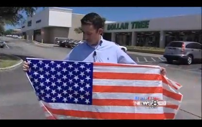 達拉斯地區(qū)當?shù)仉娨暸_WFAA報道稱,一名名叫柴德瑞斯(Tim Childress)的消費者日前到一元商店“Dollar Tree”達拉斯地區(qū)一家分店購買塑料材質(zhì)的大幅美國國旗,回家才發(fā)現(xiàn)這幅美國國旗上面竟然有61顆星星,比標準版美國國旗多出11顆。