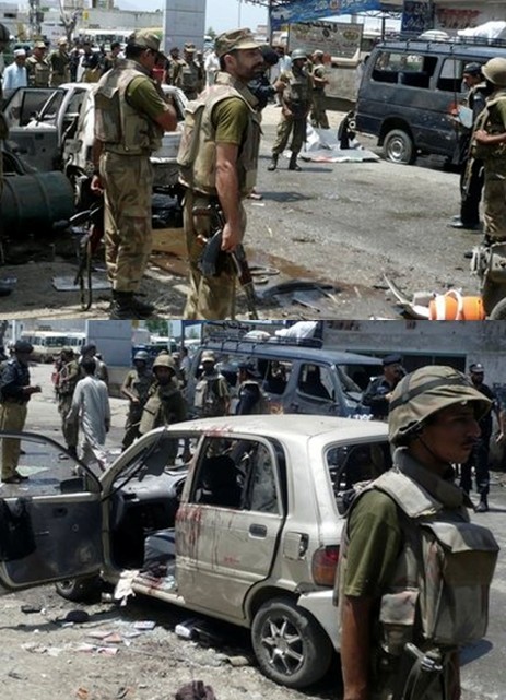 巴基斯坦媒體電視畫面顯示,爆炸導(dǎo)致附近汽車扭曲變形,民眾正在試圖營救2名被困在車中,滿臉鮮血的人。
