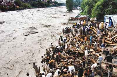 巴基斯坦北部凱伯爾-普什圖省是重災區(qū),進入緊急狀態(tài)。貝沙姆地區(qū)泥石流,將多間房屋掩埋,活埋49人。賈爾瑟達地區(qū)一個新建堤壩崩塌,5000棟房屋被洪水沒頂,估計40萬人被困西北部各村落。