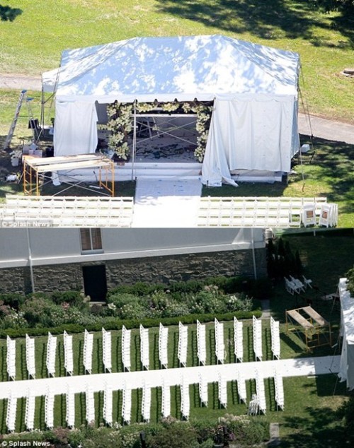 切爾西.克林頓和馬克.梅茲文斯基進(jìn)行結(jié)婚宣誓的露臺(tái)(上)以及露臺(tái)下賓客的座位(下)