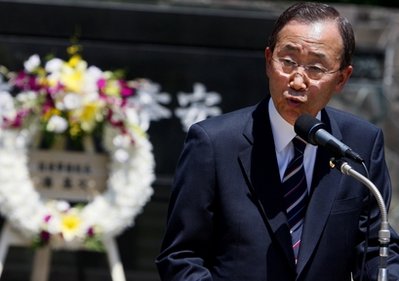 潘基文首先參觀了長崎市內(nèi)的核爆資料館,會見了“長崎核爆受災(zāi)者協(xié)會”會長谷口稜曄(81歲)及包括在日韓國人在內(nèi)的受害者,聽他們講述了遭轟炸的經(jīng)歷。