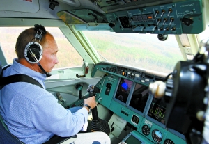 10日,普京在視察莫斯科南部梁贊地區(qū)時,親自登上一架別—200直升機參與滅火。俄羅斯電視臺畫面顯示,普京頭戴耳機,坐在副駕駛座上,使用操縱鈕從河中取水,并噴灑在一片燃燒的森林上,成功撲滅了一處火點。