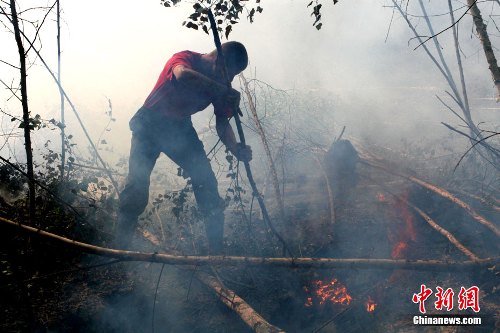 一名滿身泥土的滅火隊(duì)員對記者說,他們是10號從另一火場趕到這里的,“當(dāng)時的情形非常嚴(yán)重,地下是泥炭火,地上是森林火,煙霧中2米開外就什么都看不到了,沒法呼吸。最后呼叫飛機(jī)趕來灑水才控制住火情!