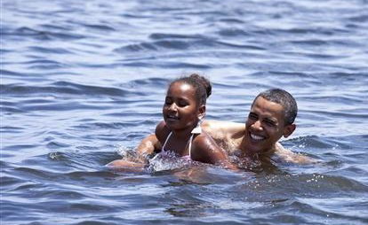 不過白宮官方網(wǎng)站幾個小時后還是主動發(fā)布了一張奧巴馬父女戲水的照片,相比2008年在夏威夷被拍到令人“印象深刻”的胸肌和腹肌,這次奧巴馬很低調(diào),他笑容燦爛,只在海水中露出半邊性感的肩膀。