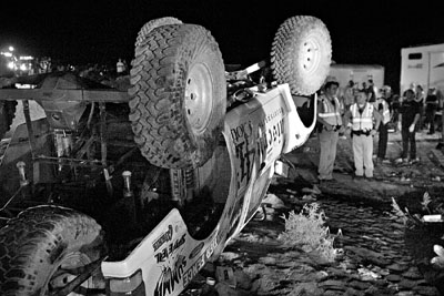 前晚約7時(shí)40分,位于洛杉磯東北約165公里沙漠地區(qū)的“加州200荒漠越野車比賽”開始不久,位于前列位置的Prerunner四驅(qū)車駛到距起點(diǎn)約3.2公里的跳臺時(shí)出事。