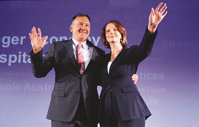 總理吉拉德昨日在布里斯班展開競(jìng)選活動(dòng),但僅得500人出席。她仿照美國(guó)總統(tǒng)奧巴馬的競(jìng)選口號(hào)“Yes,We Can”(我們做得到),改為“Yes,We Will”(我們將會(huì)),并以此就醫(yī)療和教育等改革做出承諾。