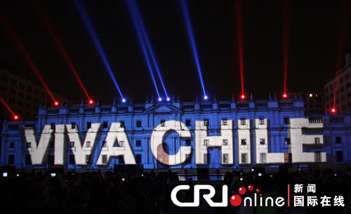 名為“智利,力量”的大型聲光電演出9月16日至21日在首都圣地亞哥總統(tǒng)府廣場舉行。作為智利獨立200周年慶;顒拥男蚰唬莩鑫舜罅坑^眾。