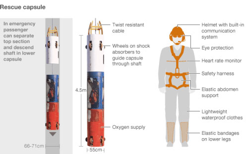 在救援艙內(nèi),礦工們將會穿上特制、重量超輕的防水服。他們還將戴上心律監(jiān)測儀以便地面人員可隨時監(jiān)控礦工在升井過程中任何細(xì)微的身體變化。