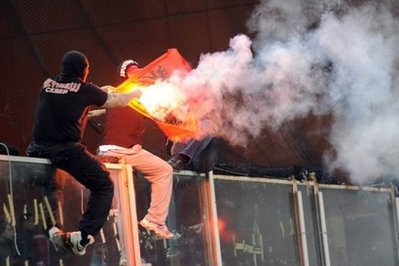 當(dāng)塞爾維亞隊(duì)球員離開(kāi)賓館準(zhǔn)備參賽時(shí),塞爾維亞球迷襲擊了該隊(duì)首席守門(mén)員,守門(mén)員被扔到球隊(duì)大巴車的一枚照明彈擊中。