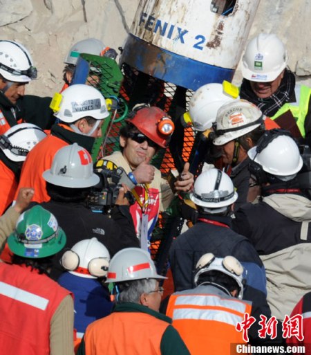 據(jù)報(bào)道,快到當(dāng)?shù)貢r(shí)間13日上午9點(diǎn)時(shí),現(xiàn)年56歲的喬治.加利古洛斯(Jorge Galleguillos)順利升井,成為智利圣何塞銅礦第11名被營(yíng)救出來(lái)的被困礦工。