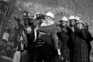 12日晚,從營救行動正式開始,智利總統(tǒng)皮涅拉就一直守在現(xiàn)場。當阿瓦洛斯從“膠囊”中走出來時,守在洞口的皮涅拉立即與這名渾身還臟兮兮的礦工緊緊擁抱。