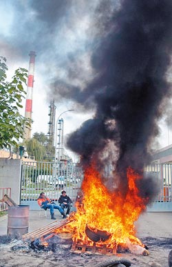 巴黎當局十八日啟動危機緊急處置機制,并發(fā)布要求煉油廠工人復工的命令,但罷工工人在巴黎東方大井煉油廠的進出要道上堆起輪胎,表明拒絕執(zhí)行政府的復工命令,僵局短期內難以化解。