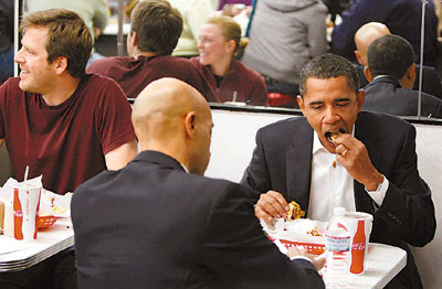 奧巴馬還在芝加哥出任參議員時(shí),已經(jīng)常在鬧市中出現(xiàn),毫無(wú)架子。分析期望奧巴馬能一改現(xiàn)任總統(tǒng)布什甚少與市民打成一片的作風(fēng),多與民眾交流。