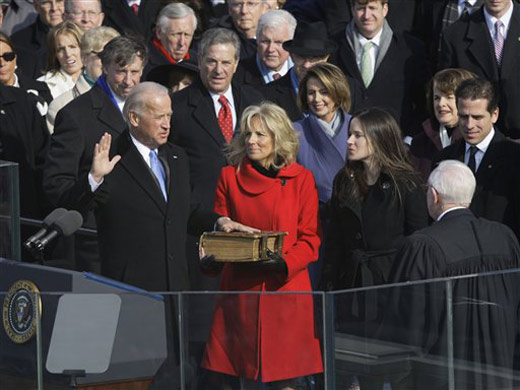 中新網(wǎng)1月21日電 當(dāng)?shù)貢r(shí)間1月20日上午11點(diǎn)56分(北京時(shí)間21日凌晨0點(diǎn)56分),美國第56屆總統(tǒng)就職典禮開始。在最高法院法官約翰.保羅.史蒂文斯陪同下,新一屆美國政府副總統(tǒng)拜登宣誓就職。