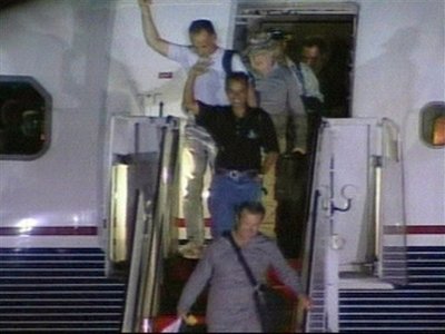 中新網(wǎng)4月16日電 據(jù)美聯(lián)社報道,曾與索馬里海盜“親密接觸”的美國“梅爾斯克•阿拉巴馬”號(Maersk Alabama)船員于當?shù)貢r間16日凌晨自肯尼亞乘坐專機返回美國,受到熱情的歡迎。