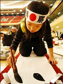 中新網(wǎng)1月6日電 綜合報(bào)道,日本一年一度的新年書法比賽5日在東京舉行,大約有3000名經(jīng)過地方選拔的選手參加了比賽。