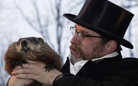 今年的2月2日,13000名觀眾聚在在賓夕法尼亞州的小鎮(zhèn)旁蘇托尼(Punxsutawney)觀察一只名叫“菲爾”的土拔鼠的行為!胺茽枴笔枪俜街付ǖ耐涟问髿庀箢A(yù)測員,2月2日早晨,“菲爾”被工作人員弄出洞,面對(duì)眾人和媒體,尋找自己的影子,然后將預(yù)測結(jié)果告訴鎮(zhèn)上帶高帽的老人比爾·庫柏,再由他向大家宣布預(yù)測結(jié)果。據(jù)說,庫柏是世界上唯一一個(gè)懂土拔鼠語言的人。這一天天氣晴好,土拔鼠“菲爾”看到了自己的影子,那么預(yù)示著美國的冬天還要持續(xù)6個(gè)星期。根據(jù)旁蘇托尼土拔鼠俱樂部的記載,自1887年起,菲爾看到過自己的影子達(dá)97次,沒看到的有15次,有9年沒有記錄。這個(gè)小鎮(zhèn)今年吸引了來自日本、冰島和埃及的游客,小鎮(zhèn)聲稱菲爾的預(yù)測從來就沒有失誤過。