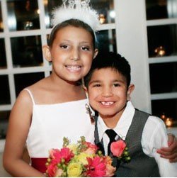 中新網(wǎng)2月25日電 據(jù)臺灣東森新聞網(wǎng)報道,美國德州出現(xiàn)一名9歲的小新娘,潔拉在父母的同意下披上婚紗,原來是因為她罹患血癌,可能不久于人世,她的父母因此決定,讓她跟在一名在醫(yī)院認識的7歲小男孩荷西共結(jié)連理,雖然這場婚禮沒有法律效力,但仍然是一圓小女孩的新娘夢。