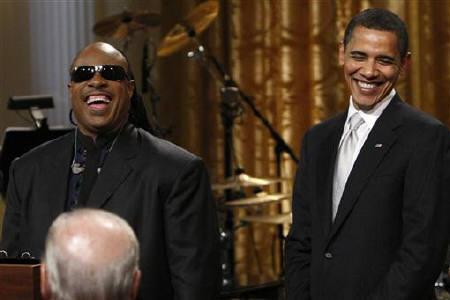 中新網(wǎng)2月26日電 據(jù)路透社報(bào)道,美國總統(tǒng)奧巴馬夫婦日前在白宮為黑人歌手汪德(Stevie Wonder)舉辦音樂會(huì)并頒獎(jiǎng),稱是汪德的音樂撮合了他們夫婦。