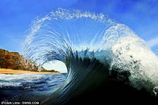 據(jù)英國《每日郵報》報道,世界著名沖浪攝影師克拉克-利特爾冒著生命風(fēng)險深入巨浪內(nèi)部,拍下了令人驚嘆的巨浪壯觀場面,這使人們得以獲得大海力量的獨(dú)特視角。