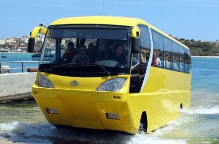 該種擁有50個(gè)座位的巴士與普通巴士一樣能以時(shí)速70英里在陸上行駛。當(dāng)遇到水路時(shí),只需輕按開關(guān),巴士的輪子就會(huì)縮進(jìn)車身,空氣活門便會(huì)推動(dòng)巴士,巴士便能在水中航行,并且淡水和海水均適用。不過這種巴士并不便宜,一輛售價(jià)就要28萬英鎊。