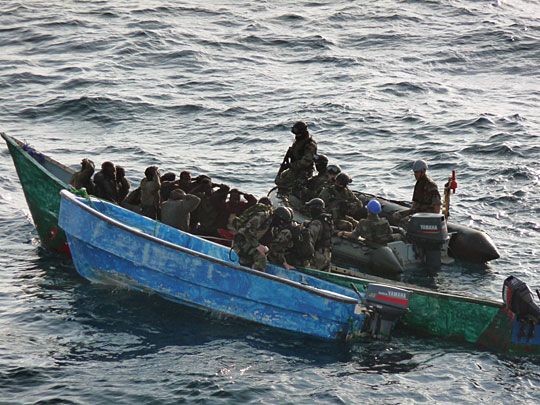 據(jù)一位法國海軍發(fā)言人稱,他們自去年4月份以來已經(jīng)抓獲了57名海盜。亞丁灣索馬里海盜劫持事件在2008年激增11%。海盜問題日趨嚴(yán)重,促使多國派出海軍展開護(hù)航和聯(lián)合打擊海盜任務(wù)。