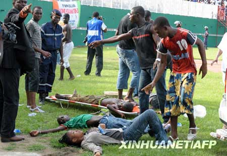 這場比賽是在阿比讓的烏弗埃-博瓦尼體育場進行的,共有近5萬名觀眾在現(xiàn)場觀看了比賽。有消息說,引發(fā)這一意外事件的原因是體育場的一面墻突然坍塌,致使附近的觀眾在恐慌中奪路逃離現(xiàn)場時發(fā)生了踩踏事件。據(jù)介紹,目前這個體育場的周邊已經(jīng)恢復了平靜。